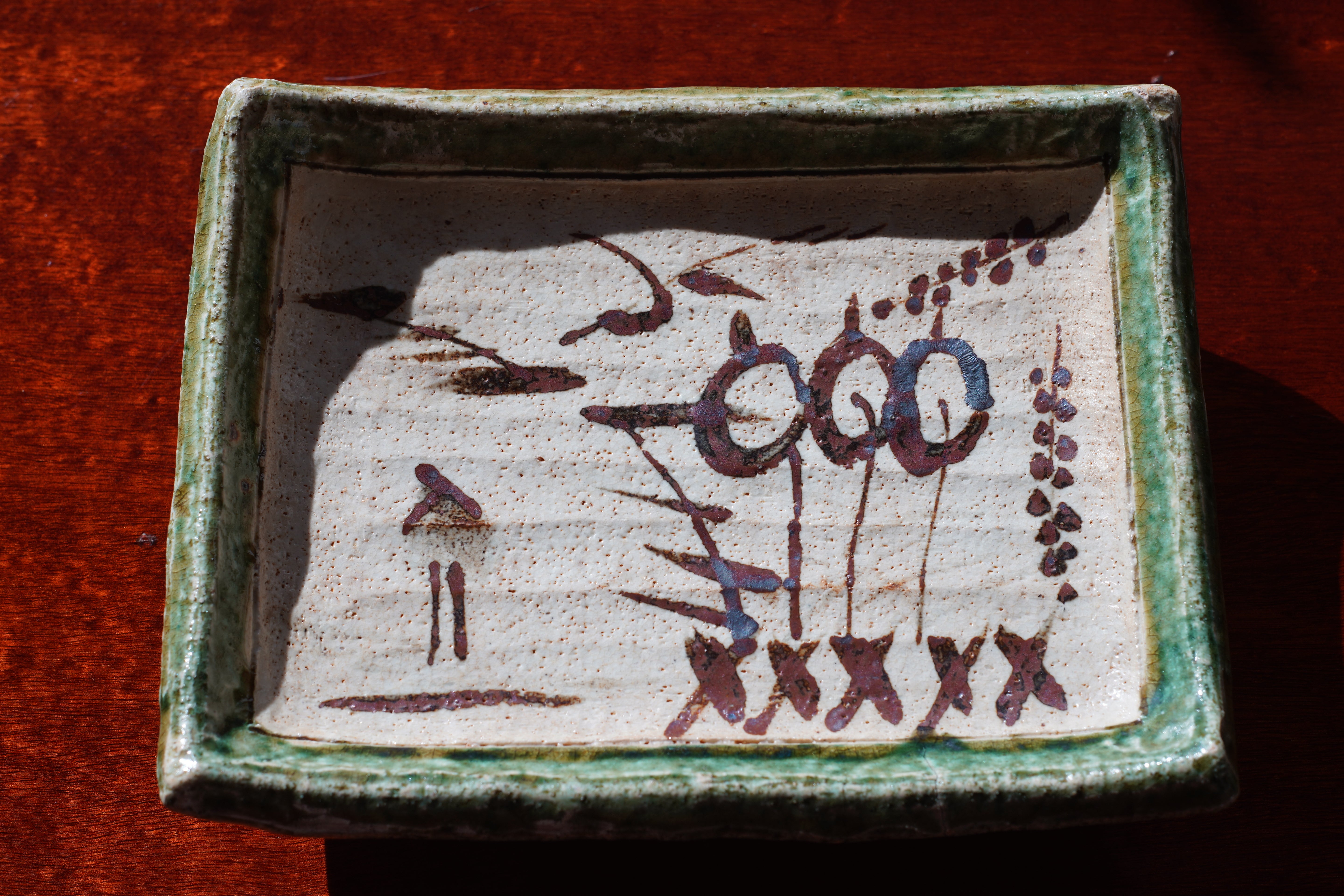 In the New Mingei Collection, you’ll also find pieces like these — Oribe plates and small dishes that carry the spirit of Oribe into the present.